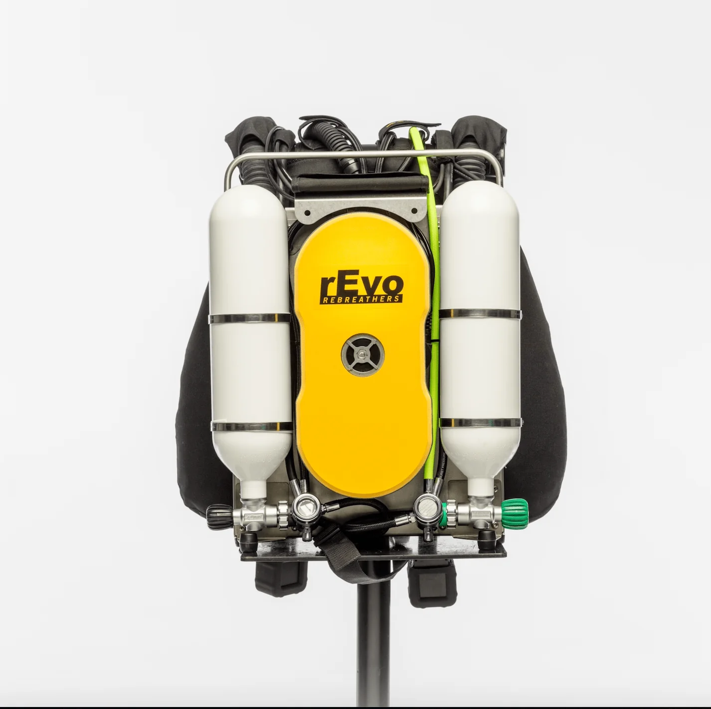 Unit is equipped with a Shearwater Petrel controller or a NERD2 controller and dual rEvo dreams for additional PO2 monitoring. The unit can be equipped with rMS and features the rEvo dual scrubber design.